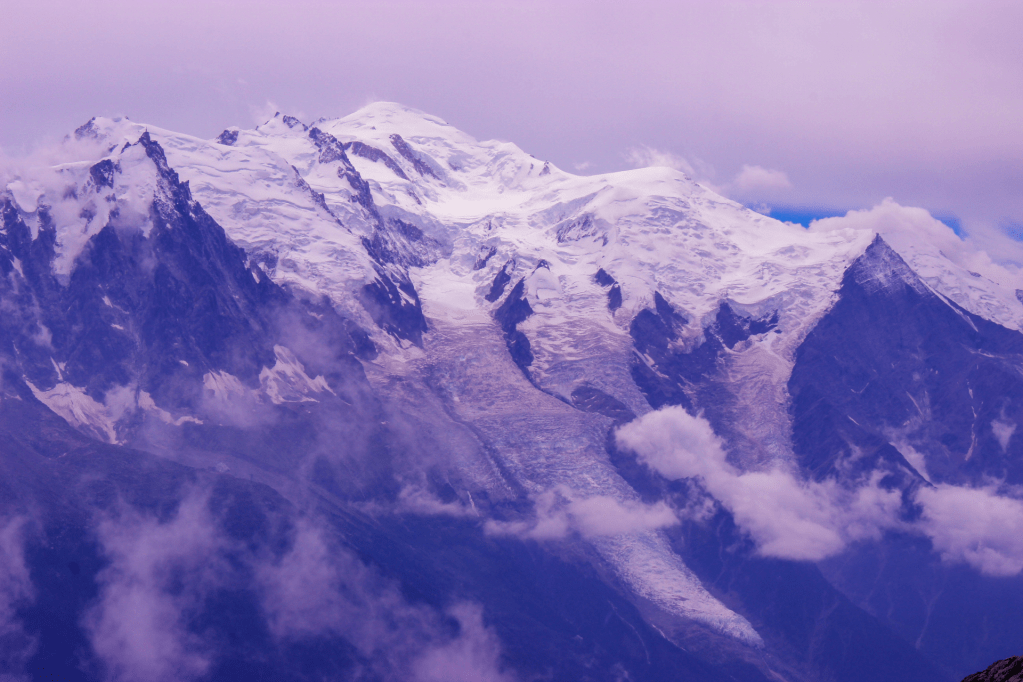 First, it changes. As he approaches the Jura Mountains and Mont Blanc, the grandeur of the Alps overwhelms him, and he weeps.