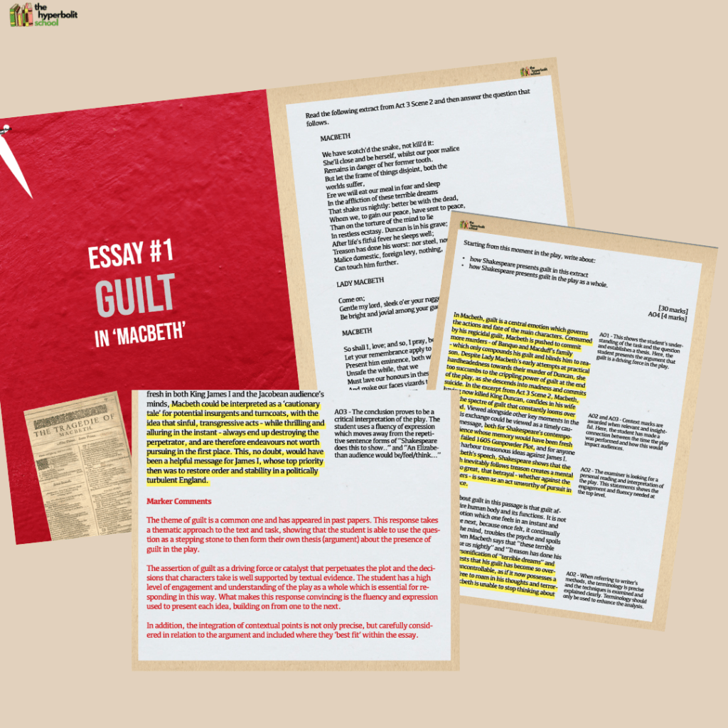- 6 top grade essays on commonly examined themes (guilt, appearance vs reality, masculinity, chaos and order, fate, evil)