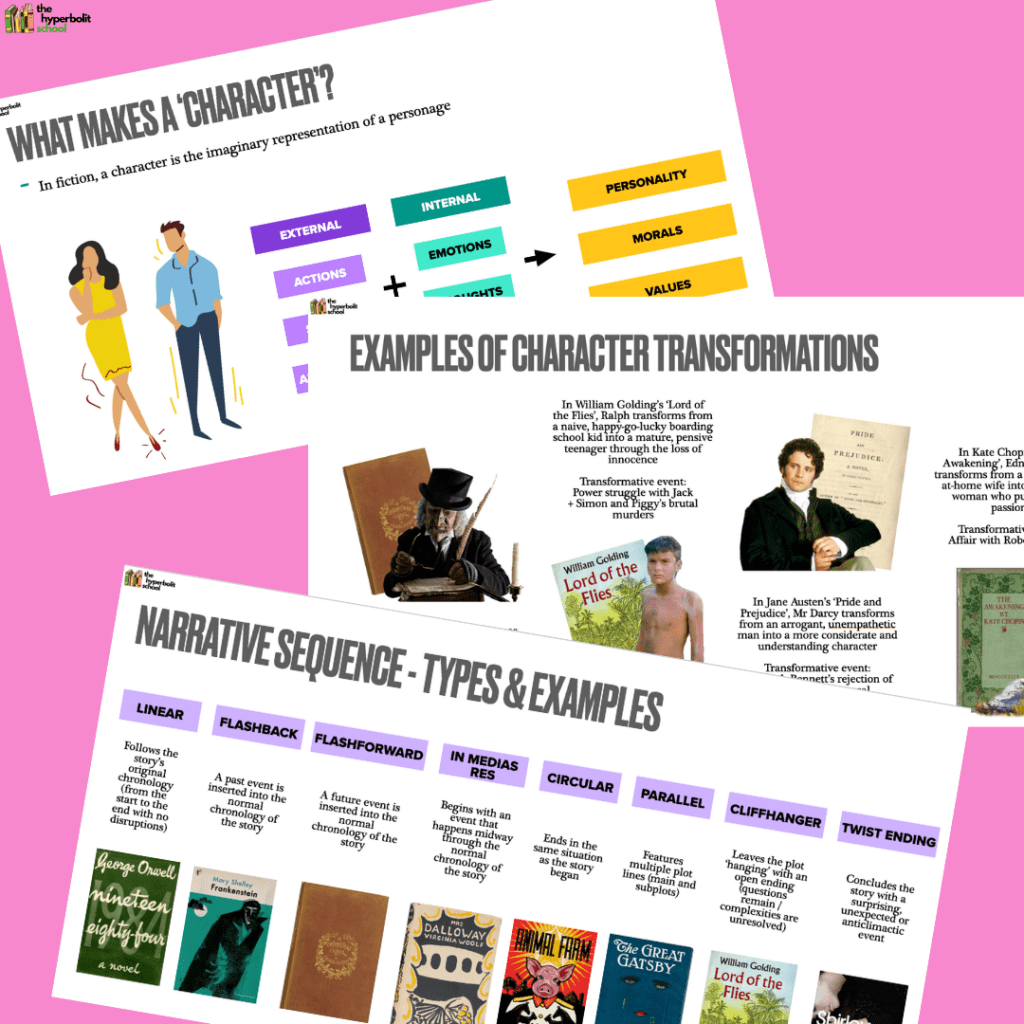 - Detailed approach to analysing characters (external vs internal features, flat vs round characterisation, literary examples etc.)